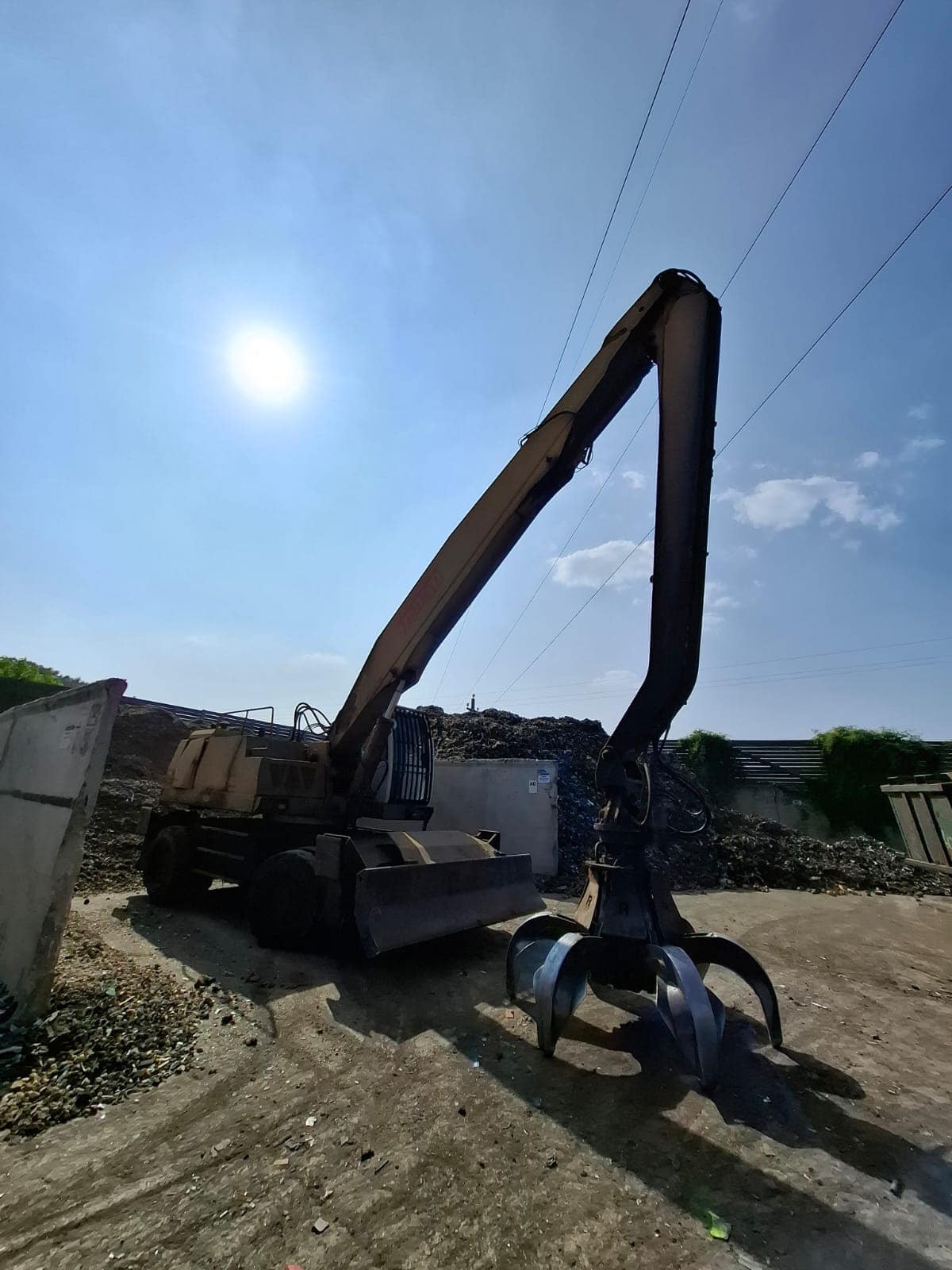 Material handler in discrete condizioni generali, completo di polipo idraulico e pronto al lavoro. Ottimo per rottamazione, raccolta metalli e riciclo.