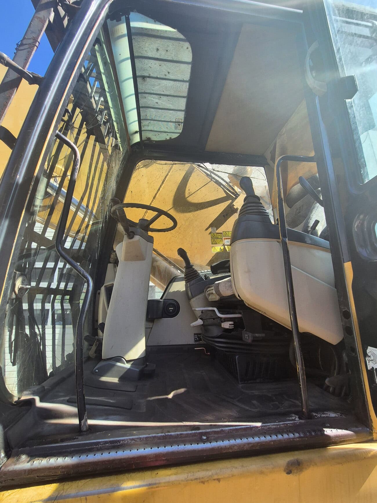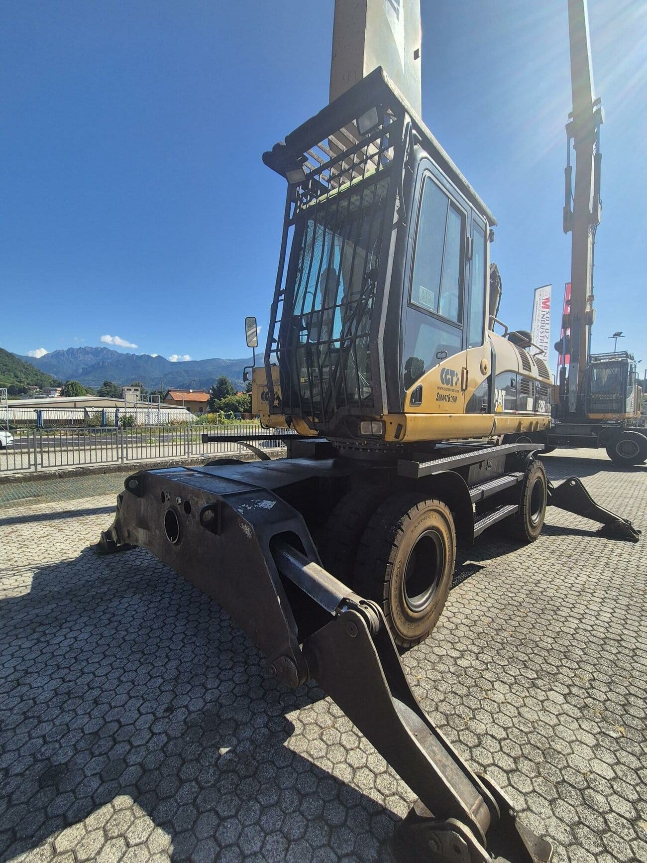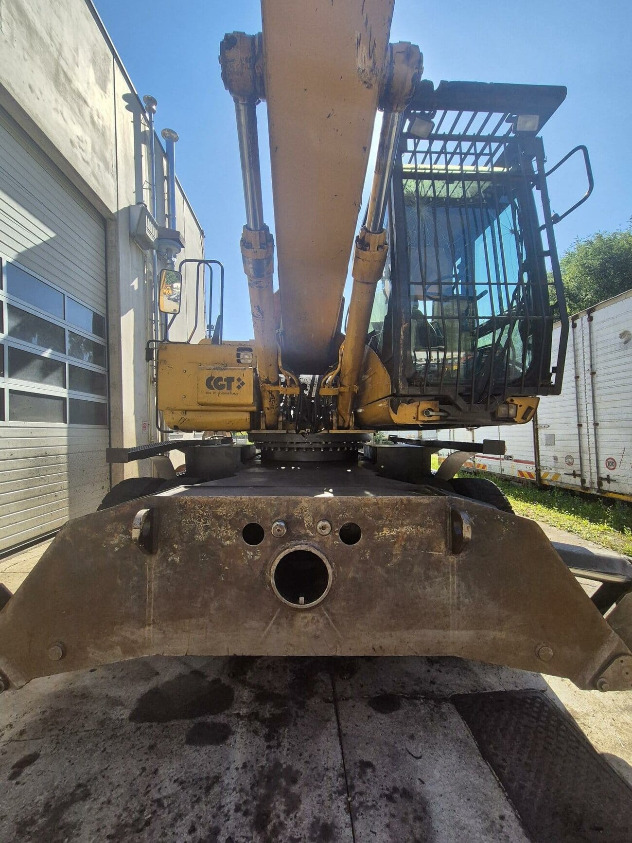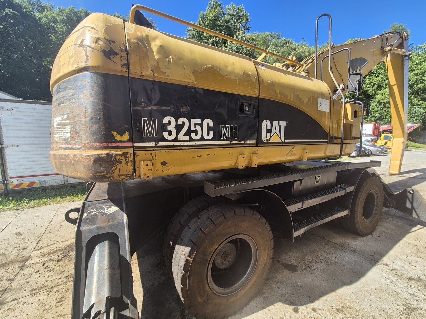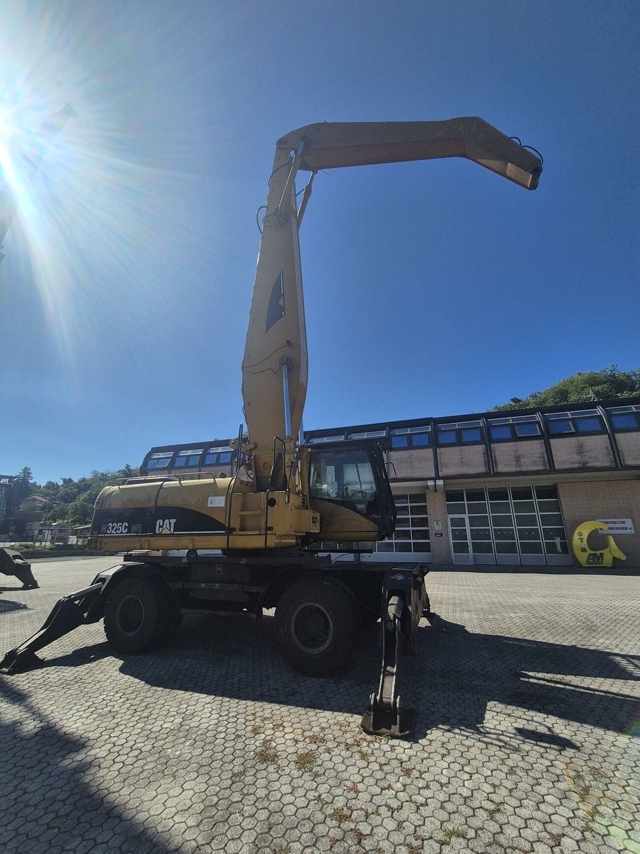 Caricatore gommato Caterpillar M325D MH del 2005, 14.500 h, 4 stabilizzatori, cabina sollevabile idraulicamente fino a 5 m, pneumatici pieni, motore da 238 CV, Polipo Minelli da 800 LT, buone condizioni. Motore: CAT C7 ACERT Tipo: Diesel, 6 cilindri in linea, turbo raffreddato ad acqua Cilindrata: 7.2 litri Potenza lorda: 186 kW (circa 252 HP) @ 2.200 giri/min Potenza netta (ISO 9249): 175 kW (circa 238 HP) @ 2.000 giri/min Peso operativo: ca 30.000 kg Pressione max impianto: 350 bar Rotazione torretta: 360° continua Contrappeso maggiorato Cabina elevabile